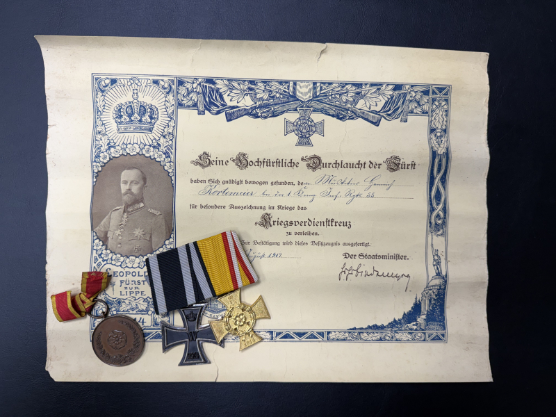 Nachlass Lippe Detmold-Ordenspange-Medaille-Urkunde-WW1