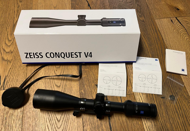Angeboten wird ein Zielfernrohr Zeiss, Conquest V4, 3-12x56, Leuchtabsehen 60. Das Glas wird OHNE!! Montage verkauft. Lediglich die Ringe für Blaser Sattelmontage können auf Wunsch am Glas verbleiben.