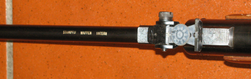 Auf dem Lauf STAMPFLI WAFFEN LUZERN sowie am Schaft ein kleiner Aufkleber