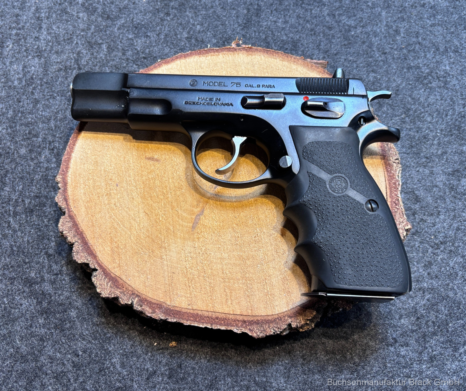 Die CZ‑Pistole Modell 75 im Kaliber 9 cm Para ist eine robuste, zuverlässige Halbautomatikpistole mit klassischem Design.