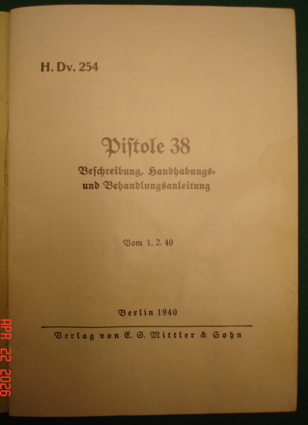H.Dv. 254 - Heeresdienstvorschrift Pistole P 38 - 1.2.40