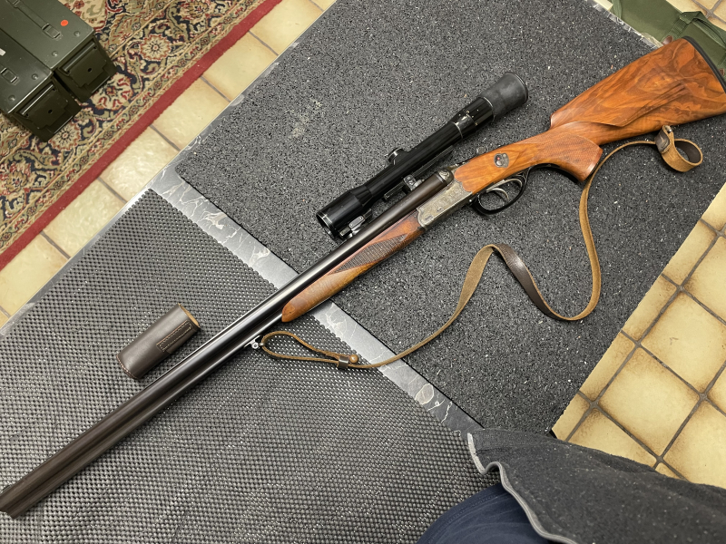Wegen Jagdaufgabe verkaufe ich im Auftrag einen Sauer&Sohn Drilling gefertigt in Eckernförde mit Krieghoff EL im Kaliber .22 Mag mit ZF Zeis Diavari 1,5 bis 6 (Einkakmontage) , Trageriemen und Mündungsschoner aus Leder.