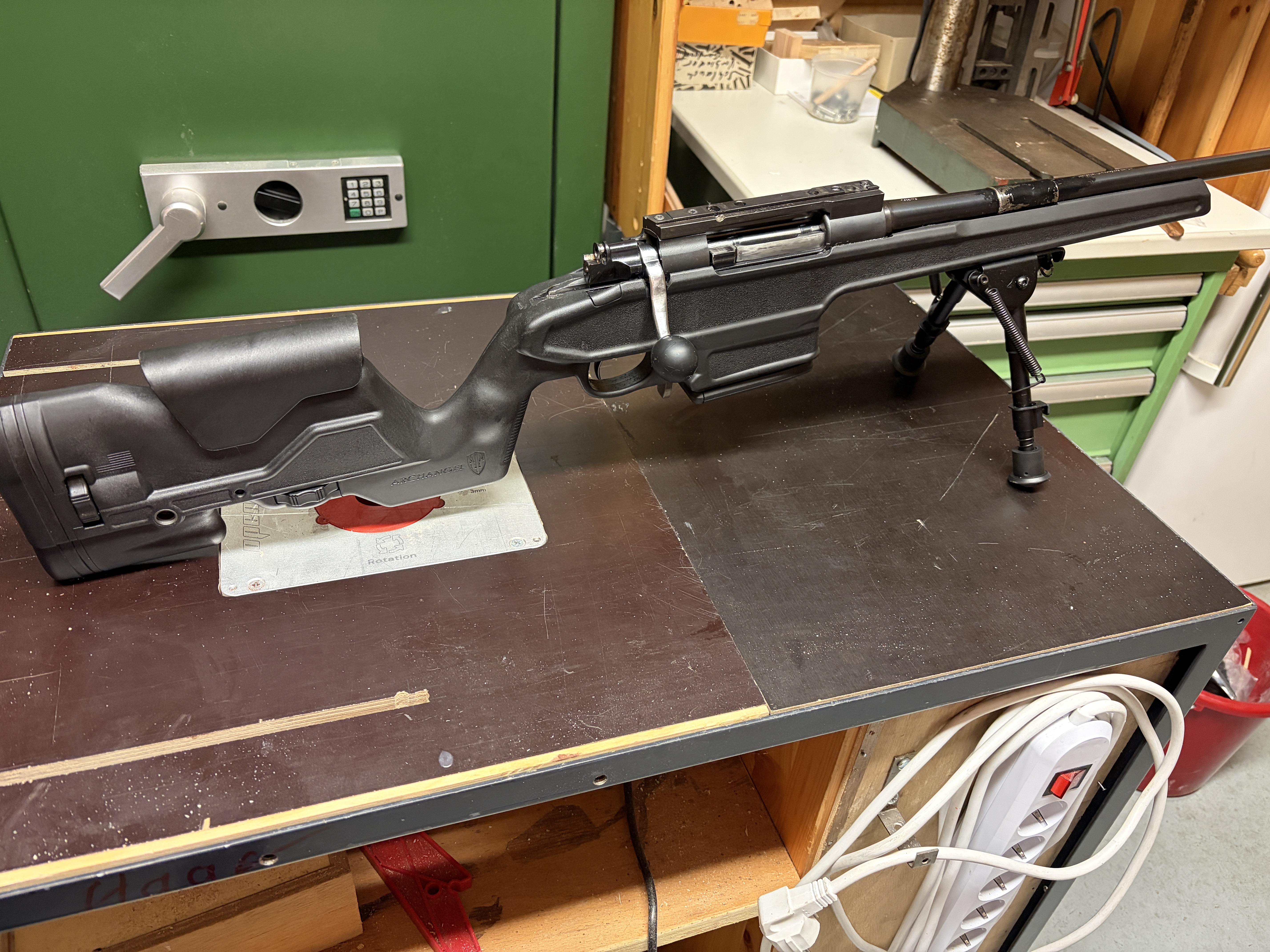 Zum Verkauf steht ein „Archangel AA98 Precision Stock“ in Backenhöhe und Schaftlänge verstellbarer Kunststoff Schaft mit Zweibein in schwarz mit herausnehmbarem Magazin für 5-10 Patronen.