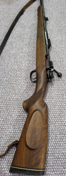 Sie bieten auf einen ausgesprochen gut gepflegten, wenig geschossenen Repetierer im rasanten Kaliber 6,5x68 von Frankonia, Modell Favorit mit einer Lauflänge von 65cm. Auf der Waffe montiert sind die Unterteile einer Original EAW-Schwenkmontage. Länge Abzug bis Schaftende 35,5cm. Schönes Schaftholz ohne Kratzer oder Macken. Der Abzug hat einen Rückstecher. Da Privatverkauf: keine Garantie oder Rücknahme. Viel Spass beim Bieten!!