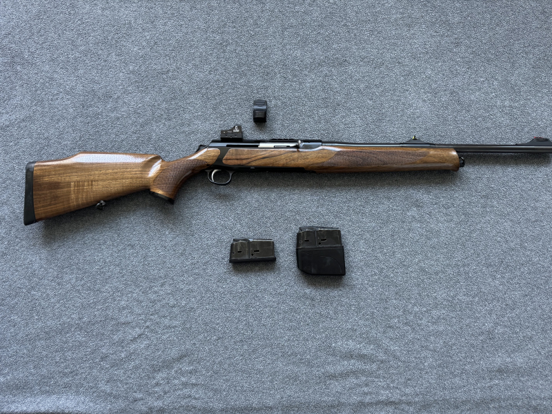 Aus Nachlass verkaufe ich eine SAUER 303 Kal 9,3x62. Perfekte Drückjagdwaffe. Die Waffe ist seit 2011 in einem Besitz und in einem hervorragenden Zustand, siehe Bilder. Kleiner Kratzer, siehe Bild, am Patronenauswurf. Weitere Bilder können gerne gesendet werden. Auf der Waffe ist ein DocterSight Drückjagdvisier mit Leuchtpunkt. Die Waffe funktioniert Leichtgängig, der Lauf ist blank, das DocterSight hat keine Kratzer auf der Linse.