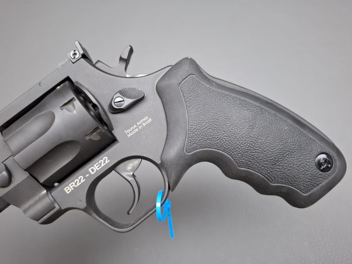 Vorführwaffe mit leichten Gebrauchsspuren und geringer Schussbelastung, 6-Schuss Trommel,Gummigriff glatt mit Logo.