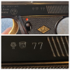 Zum Verkauf kommt eine seltene Rarität, eine voll funktionstüchtige MaRie: Sehr schöne Perfecta-Autom. Mod. G5 Kaliber 8 mm, mit der ersten PTB: 12 . Im starken Kal.8 mm, Beschuss: 1977 in Köln, mit einemem goldenen Abzug. Ob das der Originalzustand der Pistole ist oder ob der goldene Abzug nachträglich angefertigt wurde, kann ich nicht mit Sicherheit sagen, da ich die Pistole selber mal bei e-Gun ersteigert habe. Aus guter alter deutscher Fertigung von Mayer&Riem, wesshalb auch MaRie auf dem Griff steht. Beste "Made in Germany" Qualität, welche heute nicht mehr zu bekommen ist. Sehr zuverlässig und stabil. Diese Waffe wurde bis auf minimale Abweichungen als scharfe Waffe im Kaliber 6,35 gebaut. Bei der angebotenen Pistole hat das Patronenlager ebenfalls eine Stahleinlage, auch noch ohne Sollbruchstellen am Patronenlager. Aufgrund der heutigen Bestimmungen sind diese Zeiten leider vorbei. Diese Waffe darf in diesem Kaliber heute nicht mehr gebaut werden, da sie zu leicht ins scharfe Kal. 6,35mm umgebaut werden könnte. Diese Waffe wurde nur wenig benutzt und befindet sich in einem sehr GUTEN ZUSTAND. Die Brünierung ist hochglänzend und sehr gut erhalten. Im Lieferumfang: 1 MaRie Schreckschuss/Gas Pistole, Perfecta-Autom. Mod. G5, Kal. 8 mm, PTB 12, mit Magazin, und Abschussbecher. ***