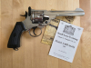 Webley MK VI, wunderschöne Co2 Replika des berühmten Kipplauf-Revolvers, hier in der seltenen Chromausführung, es handelt sich ausserdem um die 4,5mm Diabolo-Version mit gezogenem Lauf!