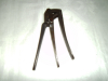 Alte Spezialzange: Zündhütchenzange beschriftet 11x32 D.R.G. M. Herstellung also vor 1945. Auf der Innenseite aller drei Hebel steht 88. Zum Entfernen der gebrauchten Zündhütchen aus Patronenhülsen zur Wiederbefüllung. Der Dorn ist hier nicht Bestandteil der Ausführung. L: 13 cm, B: vom 1.-3. Hebel 8 cm, H: 2,8 cm.