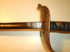 Silberne vernickelte Stahlscheide mit 2 Scheidenringen an denen Lederzeug zum Tragen befestigt ist. Trage und Altersspuren. Vernicklung gealtert. Scheide angerostet (Flugrost). Länge gesamt ohne Scheide: 63 cm, Länge gesamt mit Scheide: 65 cm, Länge der Klinge: 52 cm, Klingenbreite: 1,6 cm.