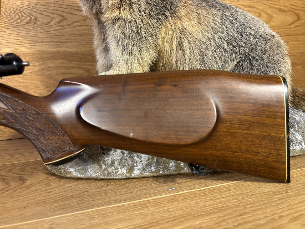 Kaliber: .22Hornet Model: Mod. 1433 Lauflänge: ~ 50cm Schaftlänge: 36,5cm Abzug: Stecher Felder und Züge sind gut sichtbar und ohne Rost. Die Waffe hat die üblich Gebrauchsspuren durch das jagdliches Führen, aber ohne Rost.