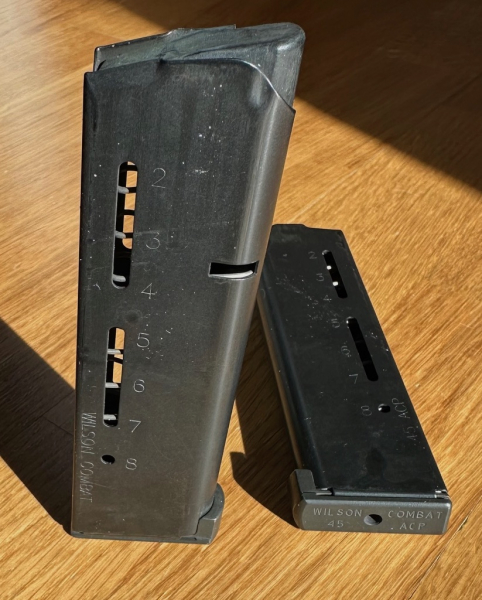 Verkaufe 2 Stück selten benutzte Wilson Combat Magazine 8 Schuss im Kaliber .45ACP für Single Stack 1911er Waffen. Haben in meiner Springfield Armory ohne Probleme funktioniert und nie eine Störung verursacht!