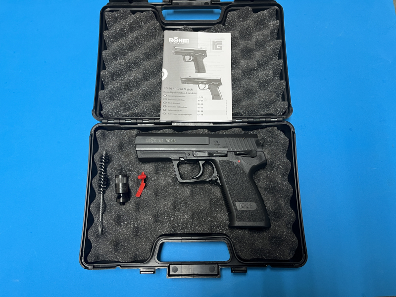 Diese Waffe ist im Kaliber 9 mm P.A.K, Sie hat ein 9 Schuss Magazin.