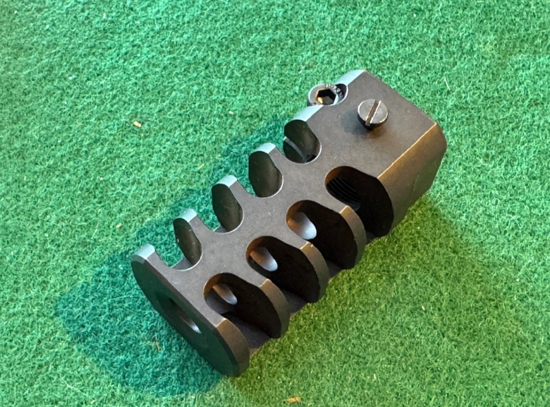 Eine neue Blaser Mündungsbremse vom Typ MBII, 4 Kammern, für Kaliber .338 LM (und alle darunter). Hoch effektives Design, dämpft den Rückstoß hervorragend.