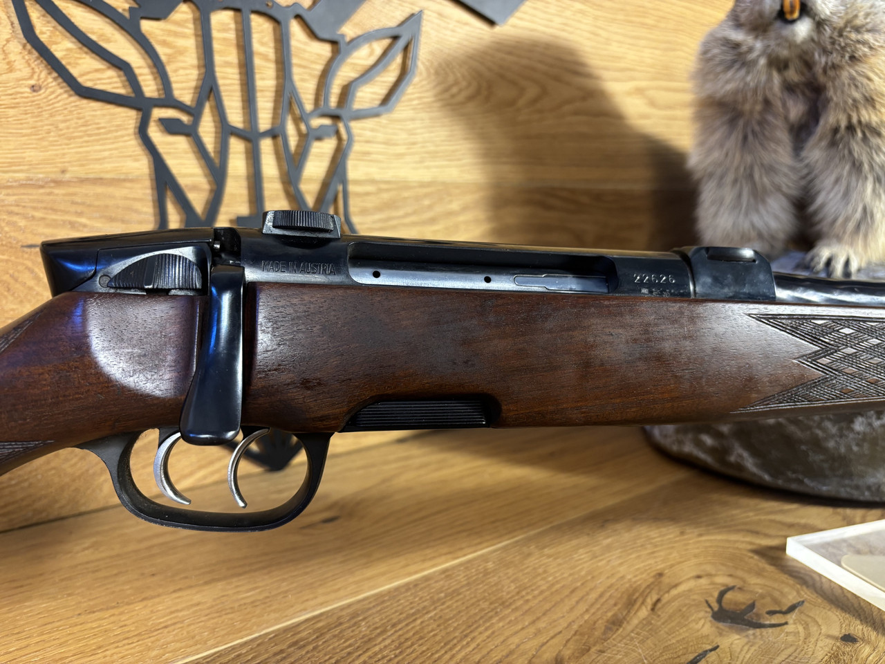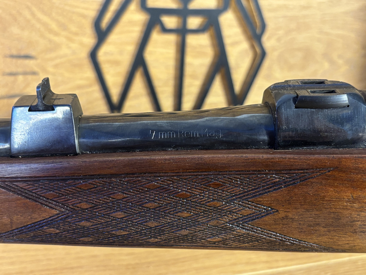 Kaliber: 7mm Rem.Mag. Model: Mod. S Lauflänge: ~ 63cm Schaftlänge: 37,5cm Felder und Züge sind gut sichtbar und ohne Rost. Die Waffe hat leichte Gebrauchsspuren durch das jagdliche Führen.