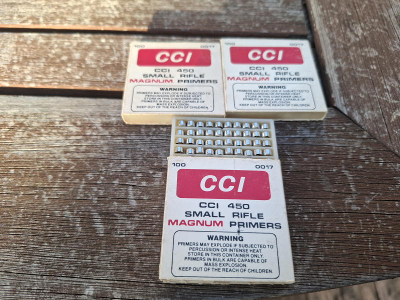 Biete 300 Zündhütchen CCI 450 Small Rifle Magnum. Die Zünder sind TOP. Keine Garantie, keine Rückgabe