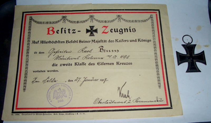 ORIGINAL 1 WK Eisernes Kreuz 2. Klasse EKII 1914 MIT SCHÖNER VERLEIHUNGSURKUNDE