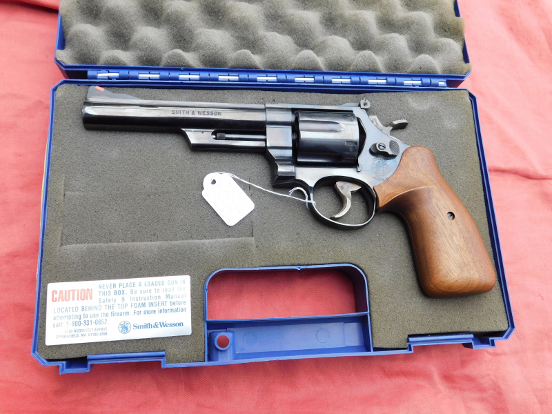 S&W Modell 29-6 Kal. 44 Mag. 6 Zoll Lauflänge. Für mich sind nur minimale Gebrauchsspuren sichtbar! Keine Magnumrille vorhanden. Gültiger Beschuss vorhanden. Komplett mit S&W Koffer! Tolle Waffe.