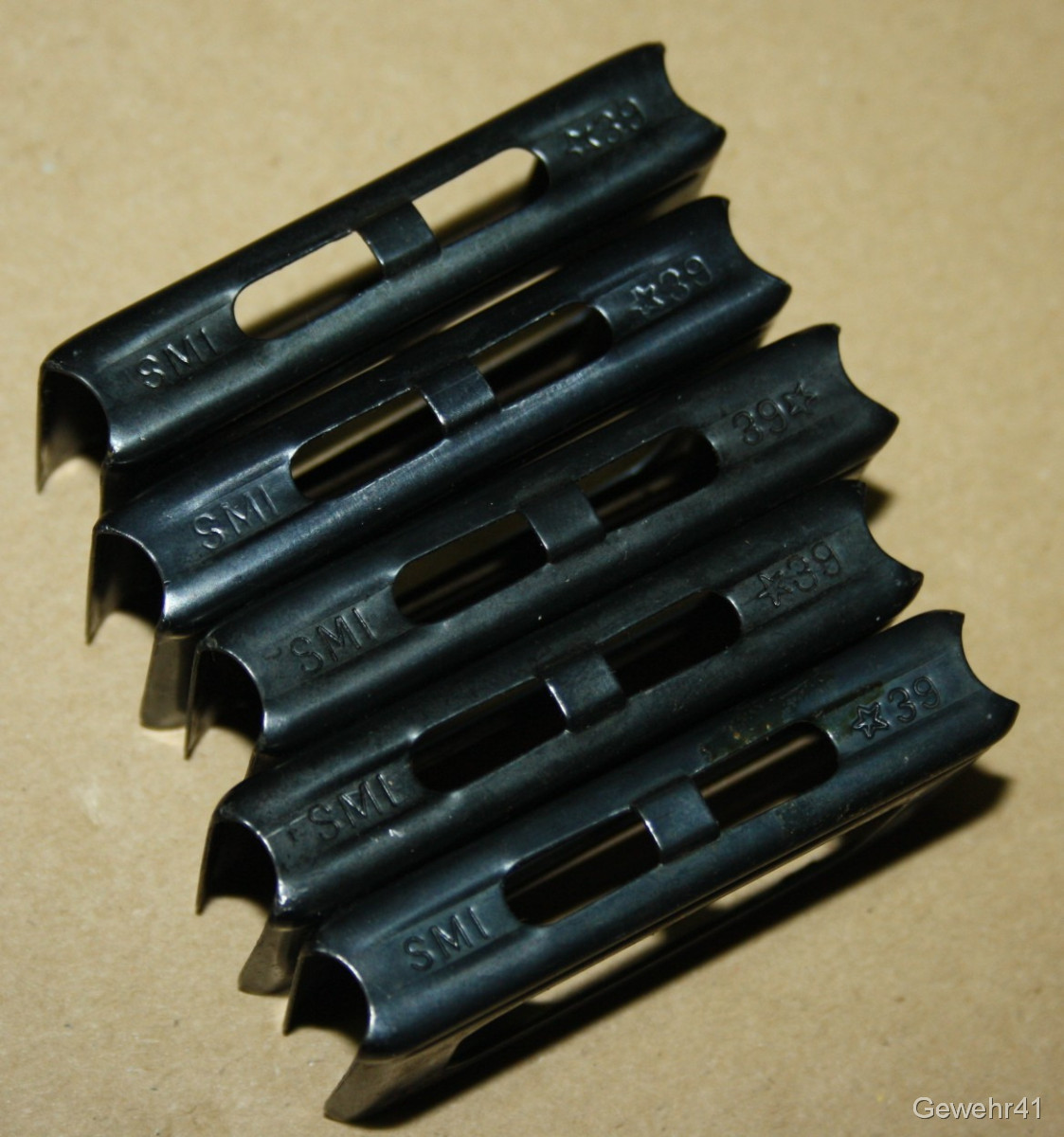 Sie bieten auf die abgebildeten 5 Stück orig. Carcano-Laderahmen. Schöner Zustand mit nur leichten Gebrauchsspuren. Voll verwendungsfähig.