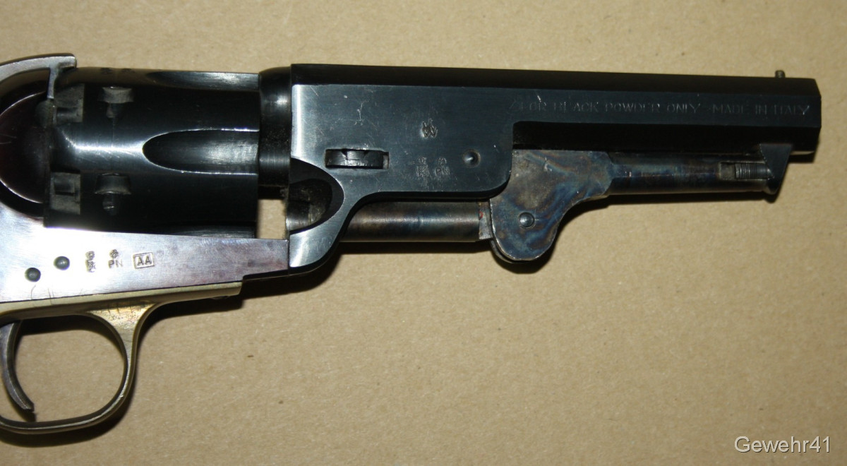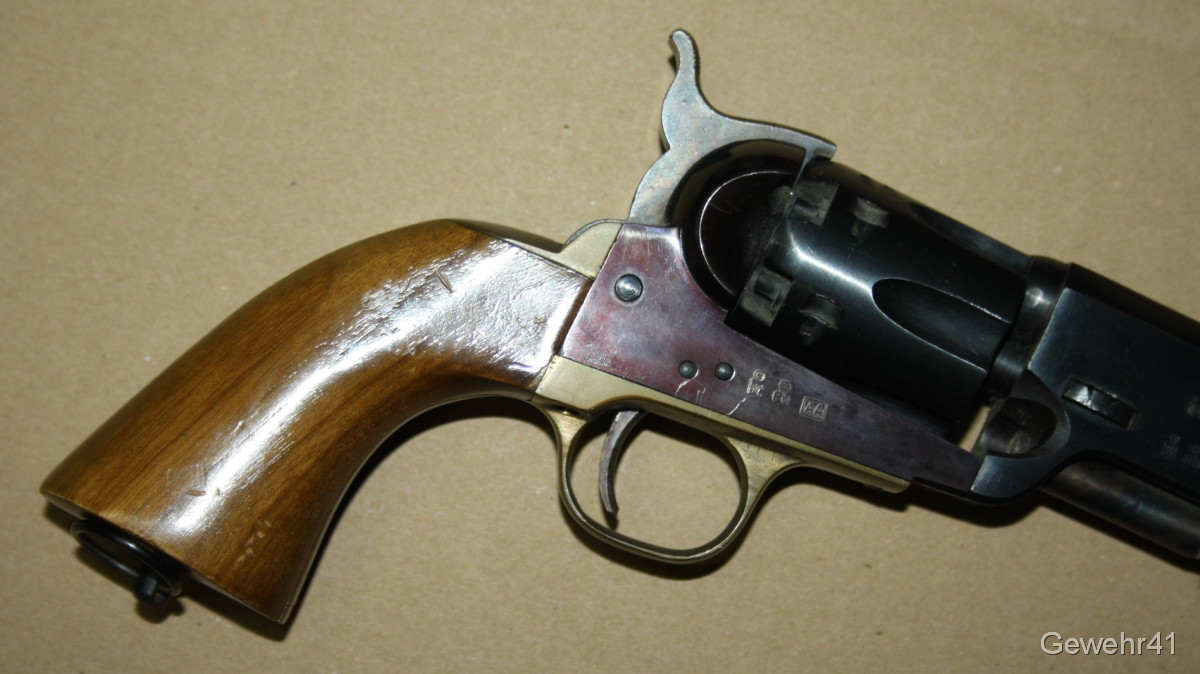 Sie bieten auf diesen Perkussions Vorderlader Revolver Modell "Navy 1851" im Kal. 36. Er ist im absolut neuwertigen Zustand und stammt aus Erstbesitz. Wurde nie geschossen. Lauf und Funktion einwandfrei.