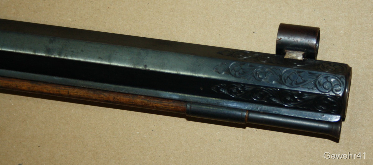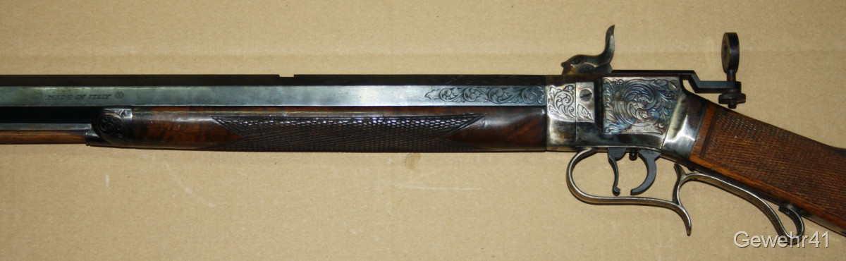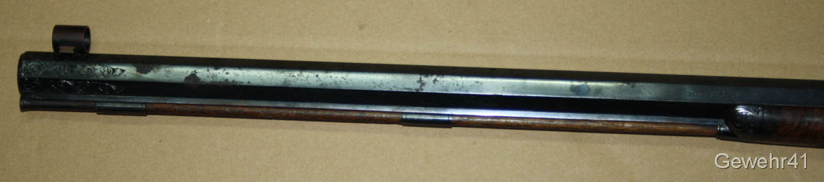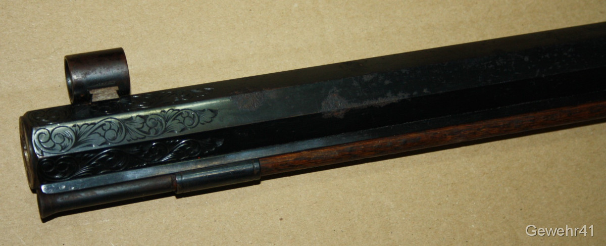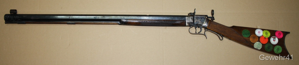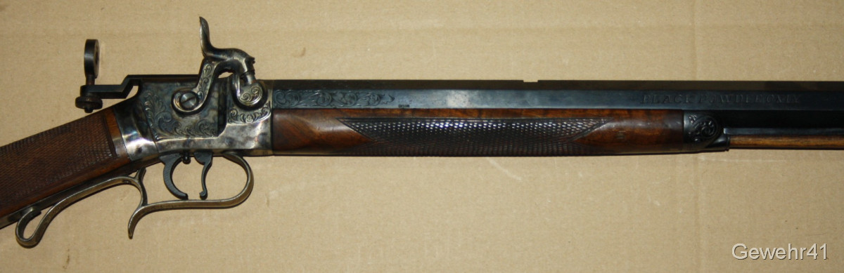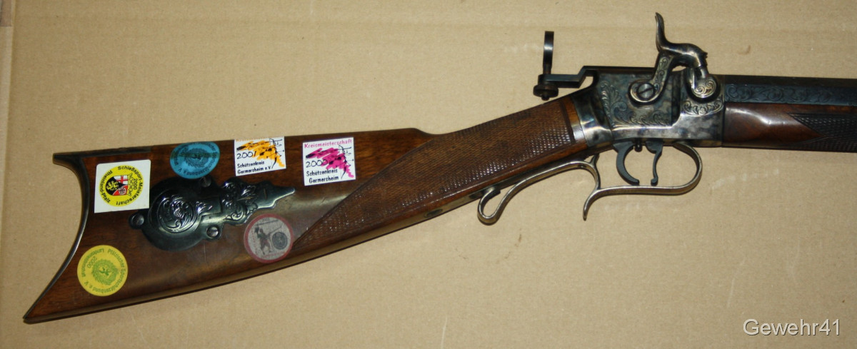 Sie bieten auf diese Perkussions Vorderladerbüchse "Wesson Rifle" im Kal. 50 mit Diopter Visierung im schönen, altersgemäßen Zustand. Die Waffe stammt aus Erstbesitz und wurde die letzten Jahre gar nicht geschossen und lagerte im Koffer. Daher auch teils leichte Macken an der Oberfläche, siehe Bilder... Gehört vom neuen Besitzer behutsam gereinigt. Lauf und Funktion einwandfrei.