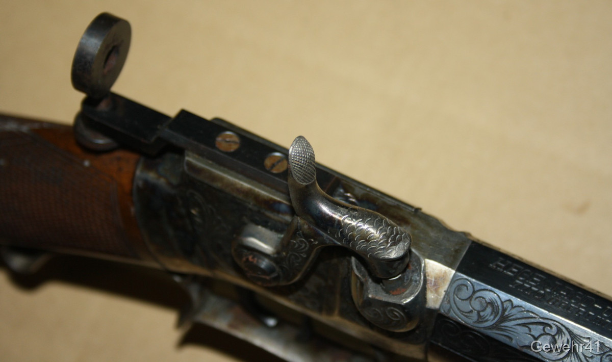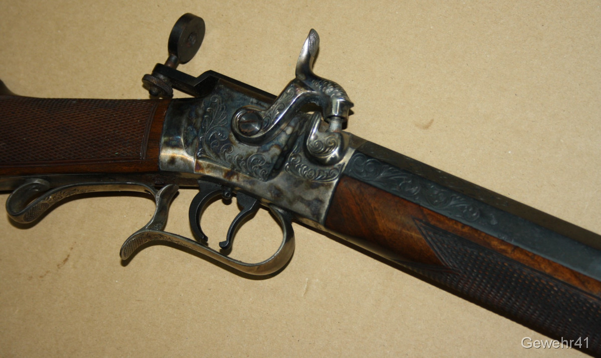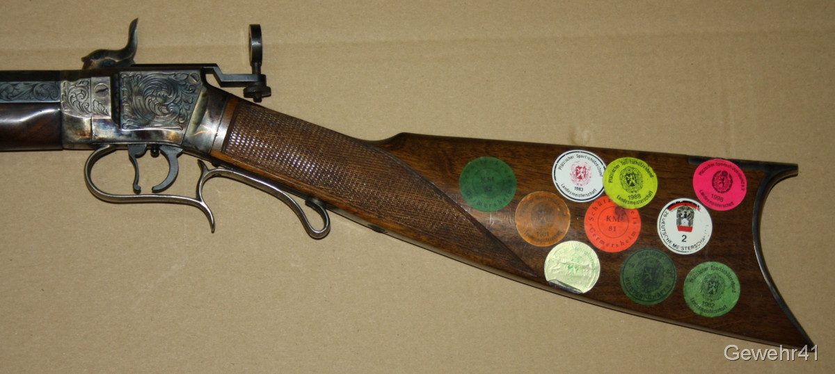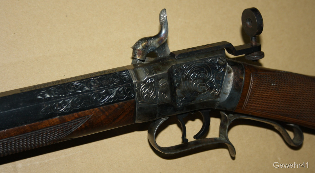 Sie bieten auf diese Perkussions Vorderladerbüchse "Wesson Rifle" im Kal. 50 mit Diopter Visierung im schönen, altersgemäßen Zustand. Die Waffe stammt aus Erstbesitz und wurde die letzten Jahre gar nicht geschossen und lagerte im Koffer. Daher auch teils leichte Macken an der Oberfläche, siehe Bilder... Gehört vom neuen Besitzer behutsam gereinigt. Lauf und Funktion einwandfrei.
