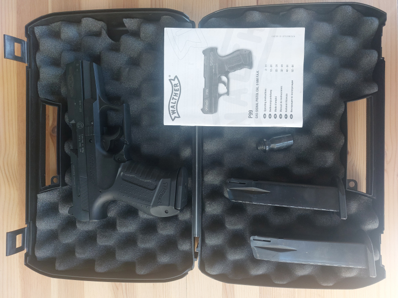 Walther P99 Kal. 9mm P.A.K. – Komplettset mit 3 Magazinen & Koffer