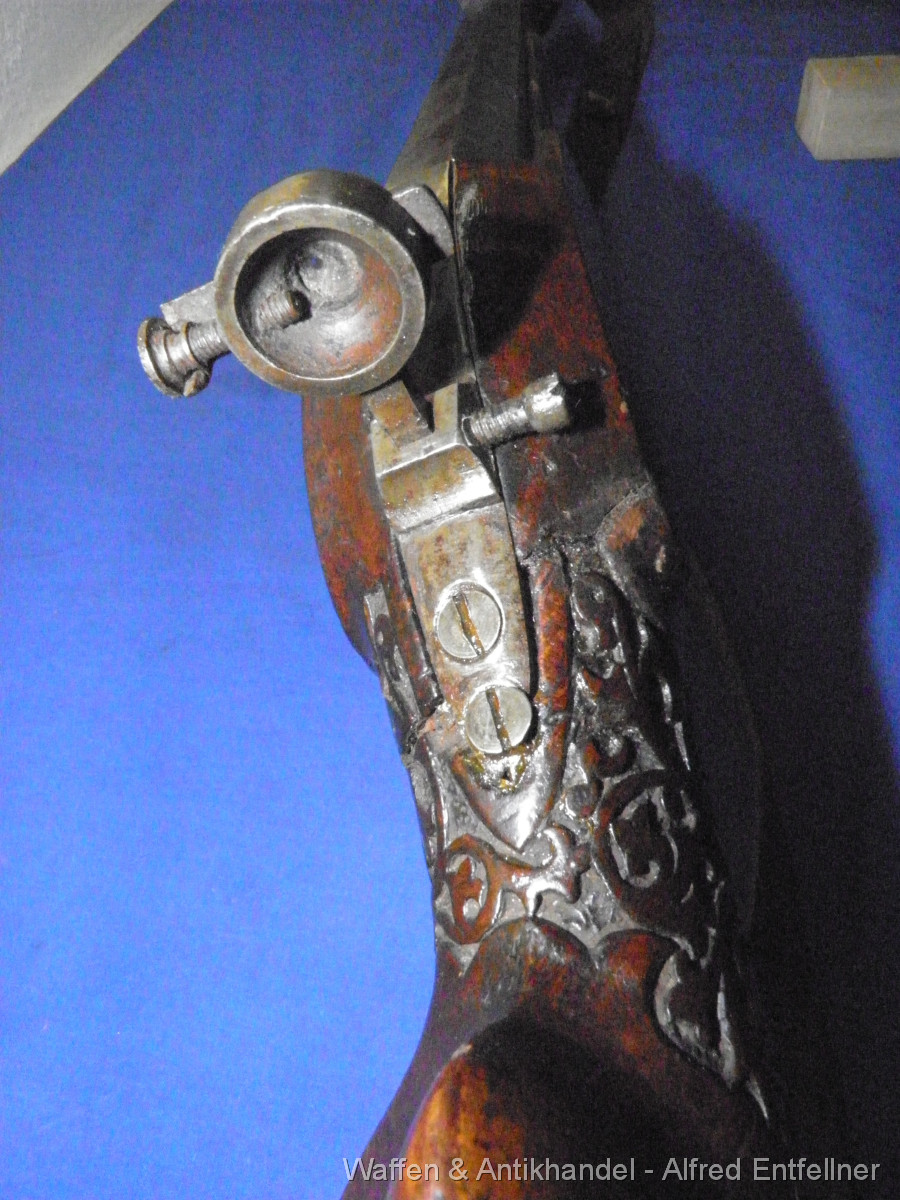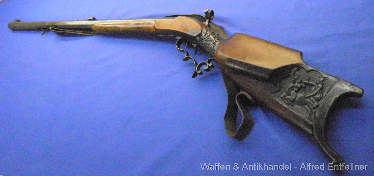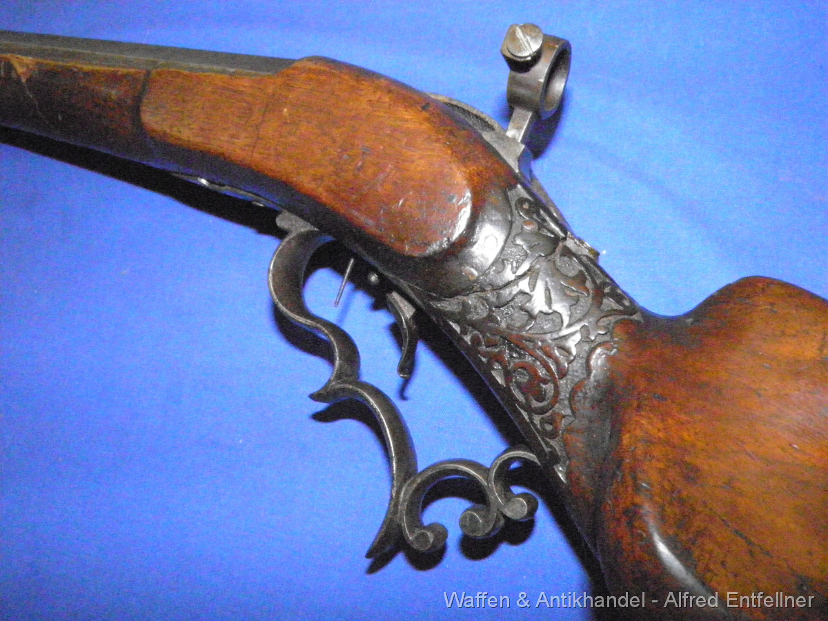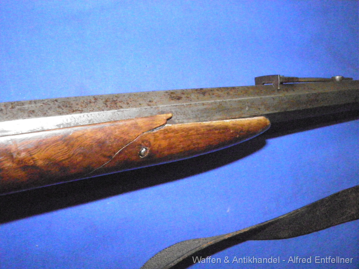 Scheibenbüchse: Alt Österreicher Machart; um 1880 sagten dazu Haklspanner. Vorderlader Perkussion. Starke Gebrauchsspuren der Lauf rostig.Schaft Reparaturstellen.