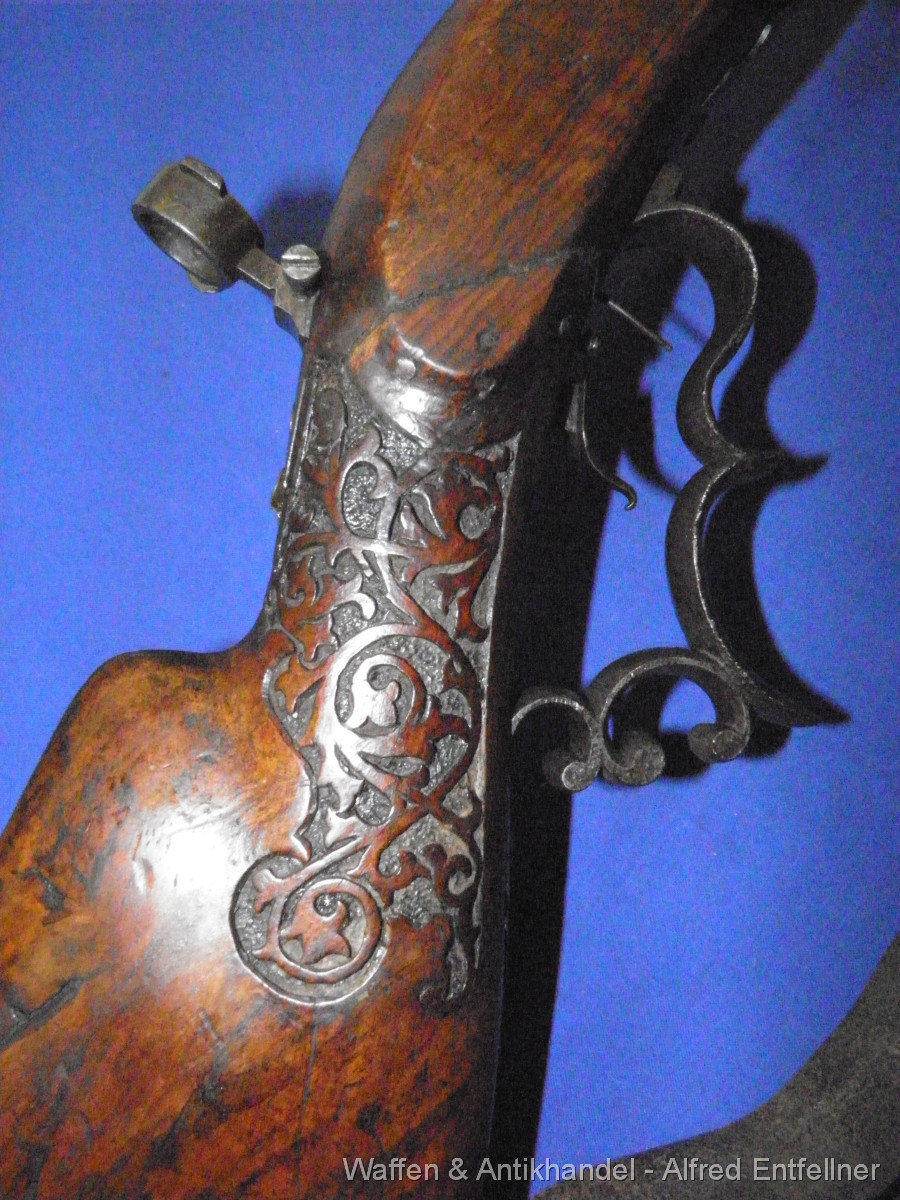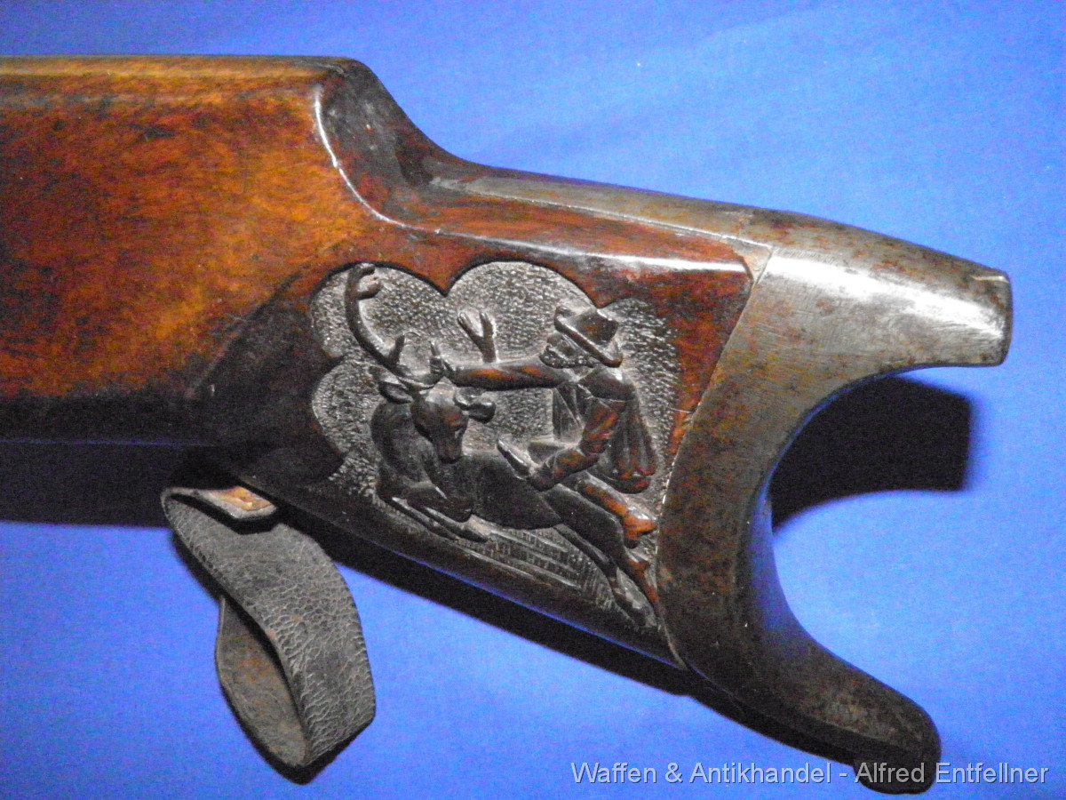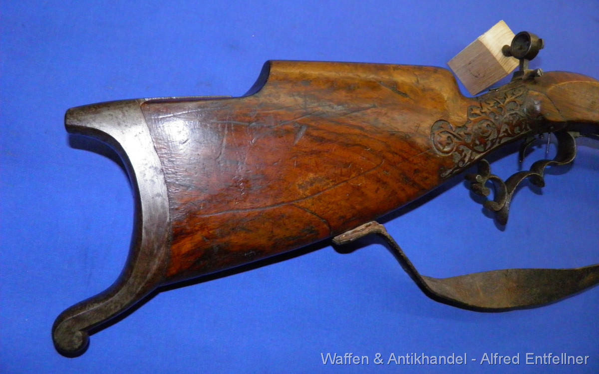 Scheibenbüchse: Alt Österreicher Machart; um 1880 sagten dazu Haklspanner. Vorderlader Perkussion. Starke Gebrauchsspuren der Lauf rostig.Schaft Reparaturstellen.