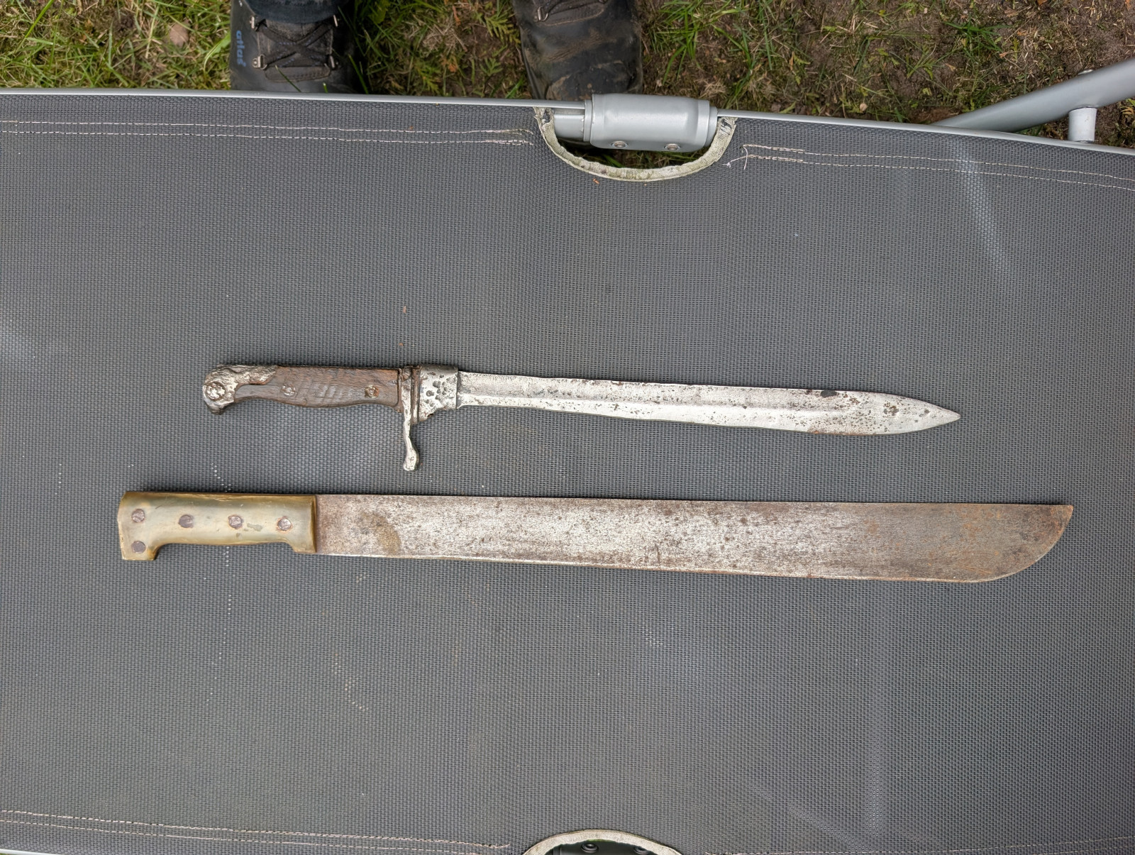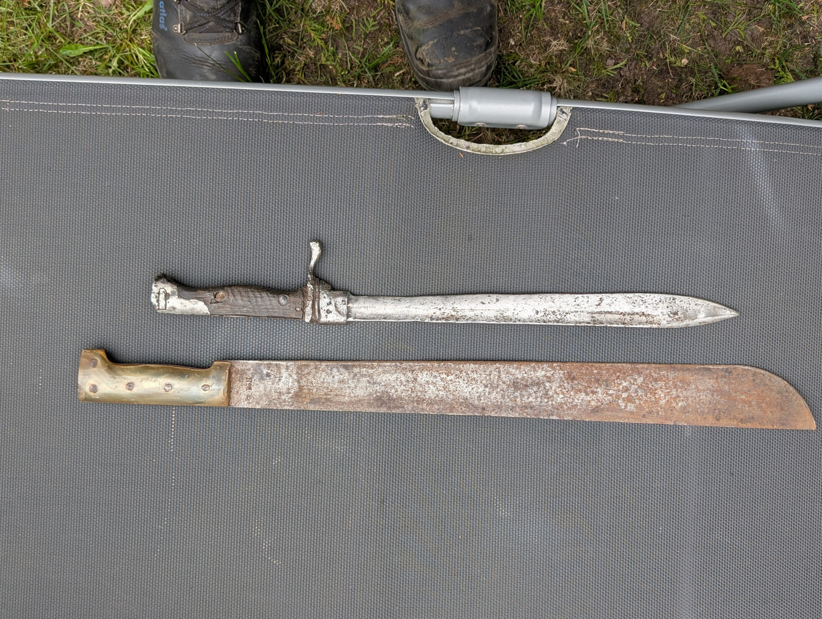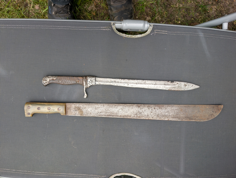 Verkaufe diese beiden Stücke. Bajonett wohl ein gereinigter Bodenfund, Machete sieht gut aus.
