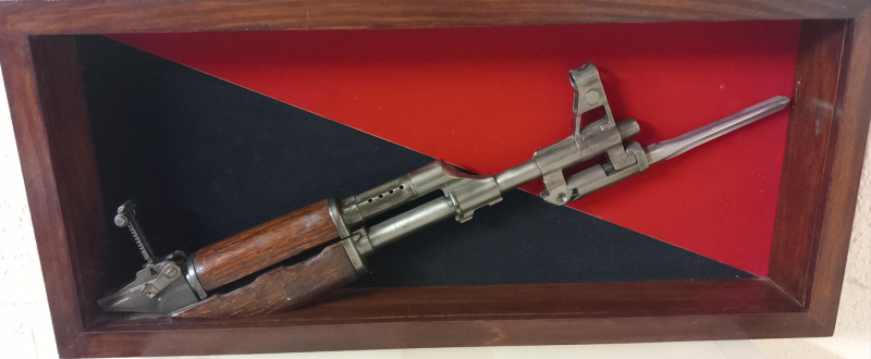 Kalaschnikow AK-47, Schnittmodell, natürlich vollständig demilitarisiert. Keine Seriennummern auf dem Gehäuse. Die Mechanik ist funktionsfähig, das Bajonett wurde entfernt. Vollständig zerlegbar. Es handelt sich um eine echte aufgeschnittene Waffe, keine Reproduktion, in Originalgröße.