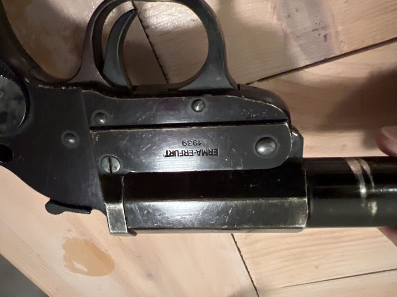 Originale deutsche Leuchtpistole LP34, Hersteller ERMA Erfurt, Baujahr 1939. • Nummerngleich (Rahmen und Lauf) • Waffenamt Abnahme WaA280 deutlich vorhanden • Originale Bakelit-Griffschalen in sehr gutem Zustand • Mechanisch einwandfrei, Schlagbolzen intakt • Lauf sauber, keine starken Korrosionsspuren • Ehrliche Gebrauchsspuren, keine Restaurierung Frühes Kriegsmodell (1939), sammlerisch interessant durch Originalität und Übereinstimmung aller Teile. Seriennummer: 7325c Weitere Detailfotos (Stempel, Nummern) auf Anfrage. Versand innerhalb EU. Käufer ist verantwortlich für Einhaltung der lokalen Gesetzgebung.
