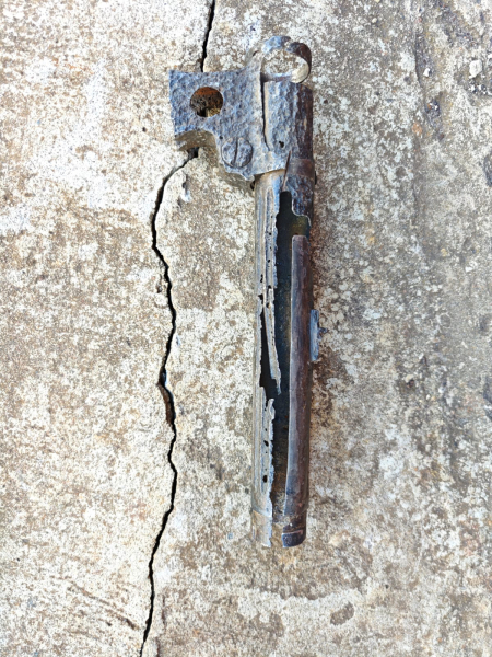 Zustand: stark gebraucht, korrodiert, deformiert, Bodenfund.