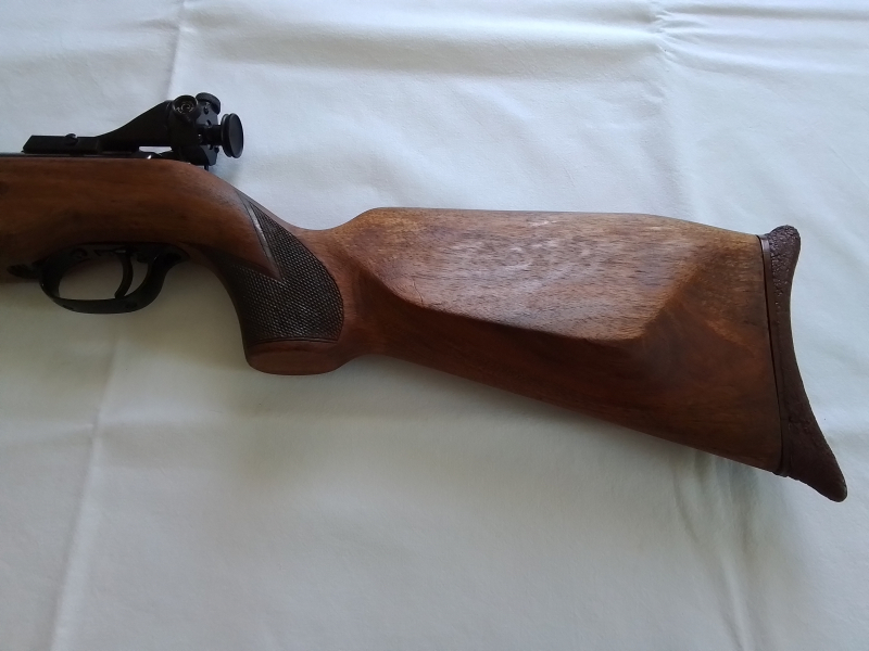Schaft wurde aufgearbeitet, Laufmantel ist braun geworden vom häufigen Laden, Schaftkappe porös,