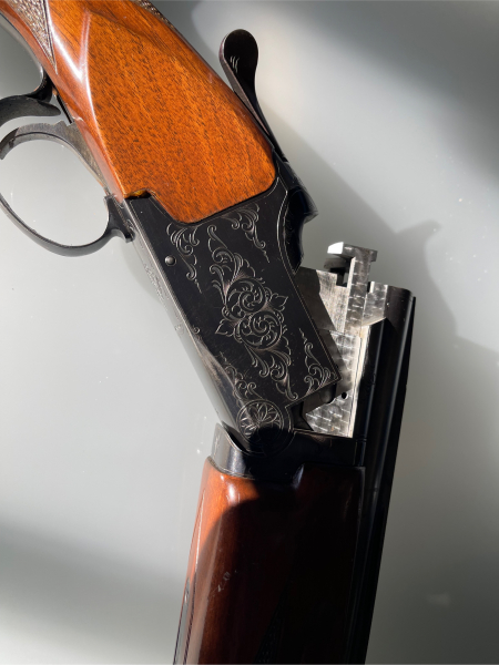 Angeboten wird eine Winchester 101. Die Waffennummer : 40848X. 12 Gauge -23/4. Choke : 1/2-1/4. Schaft-Abzug 345mm. Verschluss = gasdicht. Läufe sind spiegelblank.