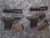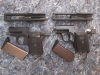 Sammlerset, zwei SM Selbstlade Pistolen, Rhöner Sportwaffen GmbH, SM 110, Kaliber 8mm, PTB 44 / 69b Beschussjahr 73 in gebrauchtem Zustand. Ich habe damit nicht geschossen. Trockenfunktion ist gegeben, Teile Nummerngleich. Sowie SM 110 A PTB 45-69 Beschussjahr 70. Ausschuss oben, Teile Nummerngleich. Ich habe damit nicht geschossen, Trockenfunktion ist gegeben. Eine Original SM Munitionschachtel sit dabei. Inhalt sind Gaspatronen mit Wachsverschluss.