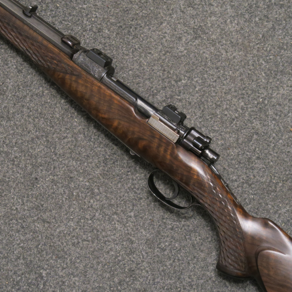 Angeboten wird eine Ferlacher Repetierbüchse im Kal. 243 Win, 60cm Lauflänge, Schaflänge 36cm. Eleganter Octagonlauf, graviertes System und Kammerstengel, Sonnenschliff auf dem Magazinboden.