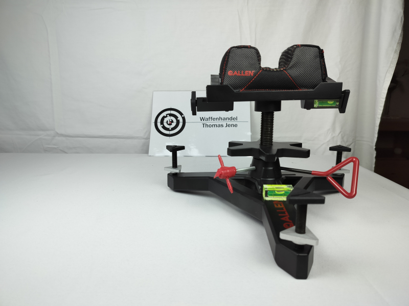Allen Einschießbock, kaum benutzt, zusätzlich mit 3 Wasserwaagen ausgerüstet (leicht entfernbar) und zusätzlichem Feststellschraube (Eigenbau) zum besseren Feststellen, ein Lackkratzer siehe Bild 2