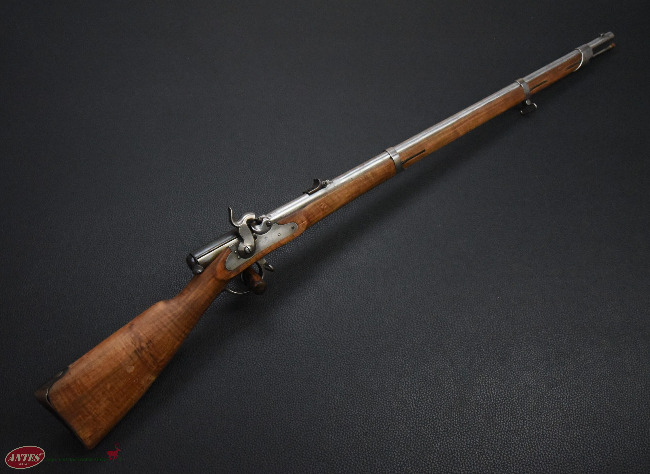 Bayrisches Perkussion Infanterie-Gewehr Mod. M1858/67 mit Abänderung auf den Podewils-Lindner Verschluss.
