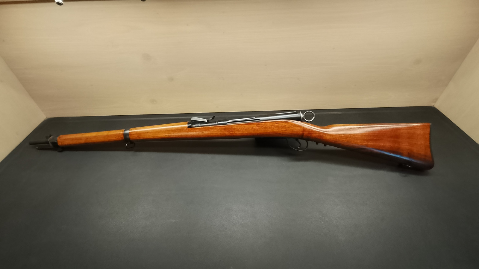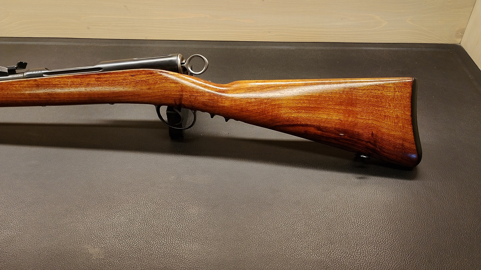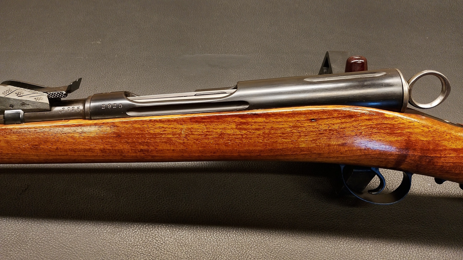 Zur Auktion kommt : Kadettengewehr 97 . Kaliber 7,5 x 53 . Einzellader . Länge ca. 110,5 cm . Ser.Nr. 2925 . Lauf Top . Der untere Laufring hat eine andere Nr. 551 . Sowie Kimmenblatt Nr. 758 . Sonst Nummerngleich . Schöne Waffe . Erhaltungszustand ist Ansichtssache . Bitte schätzen Sie den Zustand anhand der Bilder selbst ein . Bilder sind Gegenstand der Auktion . ,,,,,,,,,Viel Spass beim Bieten ,,,,,, ---------Verkauf nur gegen : WBK rot ( Sammler mit passendem Gebiet ) oder WHL -----------