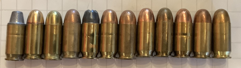 Biete hier 12 Patronen der klassischen .45 ACP in Besterhaltung aus verschiedenen Ländern an (BS in loser Reihenfolge: W-W 45 AUTO; HXP 68; FS 2 52 I; REM.UMC 45 AUTO; PPU [kyrillisch] .45 AUTO; F A 42; — 45 AUTO — M.R.P.; G.F.L. 45 A.C.P.; F N .45 65; 11,26x23 FLB77; R-P 45 AUTO; Geco .45 Auto).). Die Patronen sind delaboriert und enthalten keinerlei Gefahrenstoffe mehr, dafür aber Klapperkügelchen. Der Versand erfolgt als DHL-Großbrief. Für den Versand in EU-Länder, Porto bitte vor Ablauf der Auktion erfragen.