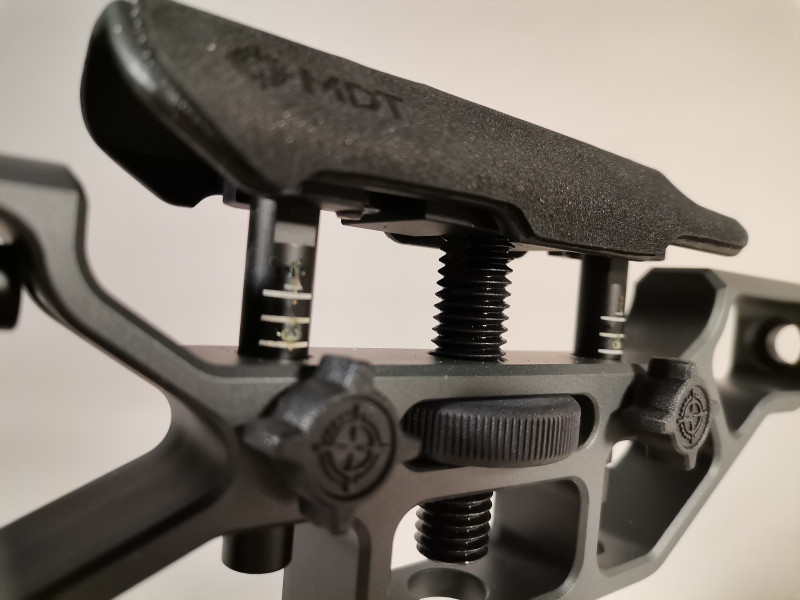 Der hier angebotene Hinterschaft des kanadischen Unternehmens MDT ist nagelneu, unbenutzt und optisch wie technisch in einwandfreiem Zustand (siehe Fotos).