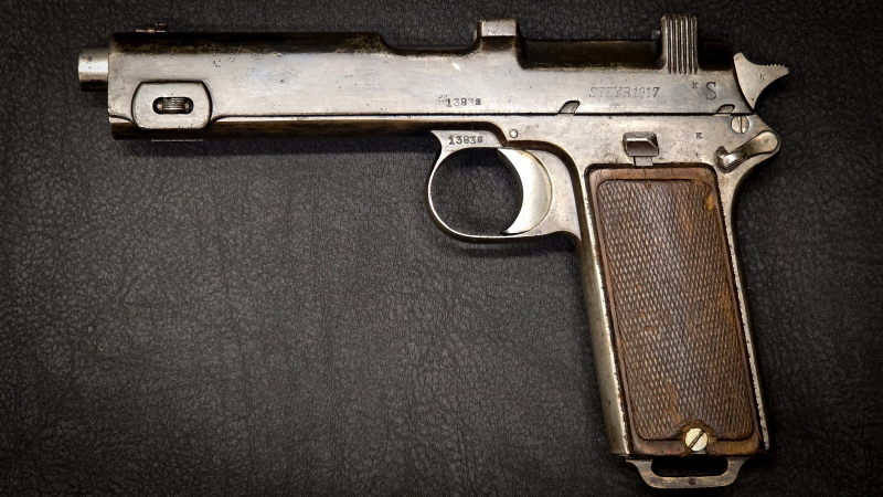 Zum Verkauf steht eine gebrauchte Pistole Steyr Modell 1917 im Kaliber 9 mm Steyr. Es handelt sich um eine klassische Militärpistole aus der Zeit des Ersten Weltkriegs mit entsprechendem historischen Hintergrund.