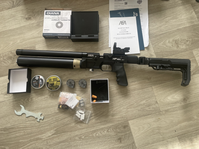 Ich biete Airgun HPMAX MK2 mit Zubehör an ,Rechnung liegt bei vom 11.08.25 Die Waffe wurde 1 mal Benutzt ,also ist wie NEU!