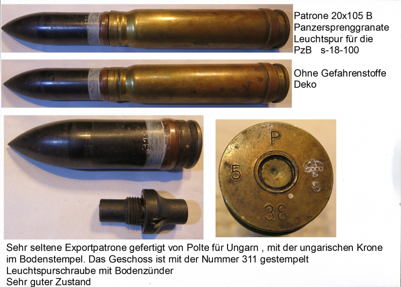 abzugeben. Patrone 20x105B für die PzB s-18-100, Panzer - Sprenggranate L`Spur, Polte Export,, Privater Verkauf kein Umtausch oder Zurücknahme. Versicherter Versand. Keine Garantie oder Gewährleistung. Ohne Gefahrenstoffe !!!!DEKO !!! Beschreibung siehe Bild... No Paypal