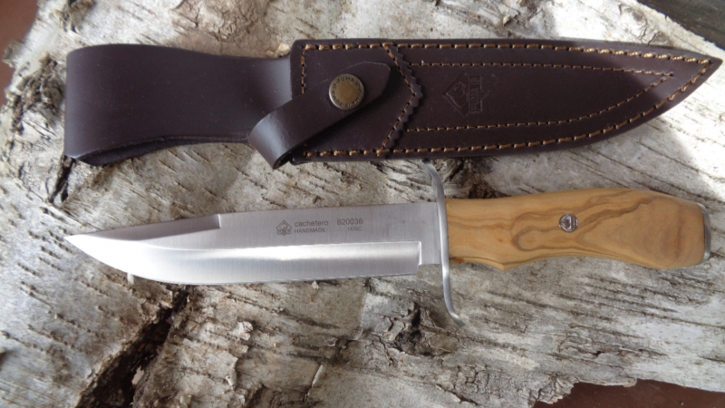 Der Dolch von PUMA IP ist ein wuchtiges Outdoormesser mit einem Parier aus Edelstahl und schönen Griffschalen aus Olivenholz. Die Dolchklinge aus 440C-Stahl bringt es auf satte 17,2 cm Länge.