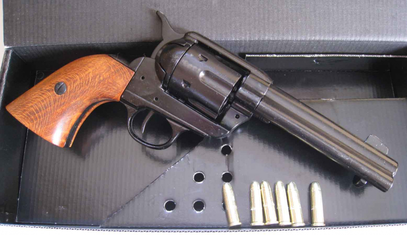 DENIX DEKO / MODELL WAFFE COLT PEACEMAKER USA 1873 - NICHT SCHUSSFÄHIG - Metall Schwarz - HolzGriff - Alle Metallteilen beweglich - Länge 26cm Gewicht ca. 960gr - Inkl. 6 Dekopatronen