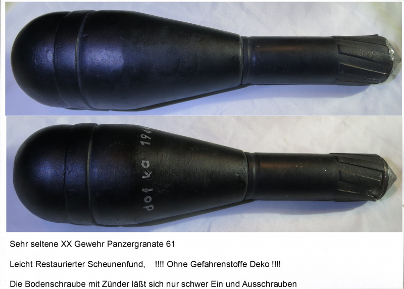 abzugeben. XX Gewehr Panzergranate 61 mit runder Haube, ,Privater Verkauf kein Umtausch oder Zurücknahme. Versicherter Versand. Keine Garantie oder Gewährleistun. OHNE GEFAHRENSTOFFE !!! DEKO !!! Beschreibung siehe Bild,,, No Paypal