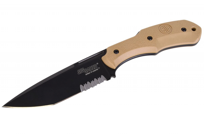 Die Klinge des Sig Sauer Messers besteht aus einem Premium-Edelstahl von Böhler-Udeholm. Durch den Zusatz von Vanadium und Kobalt ist er die optimale Wahl für einen feinen Schliff mit überragender Schnitthaltigkeit. Zusätzlich ist die Klinge mit hoch-korrosions beständigem Keramik in schwarz beschichtet und damit für jeden Einsatz, ob Angeln, Jagen oder auch Camping, tauglich.