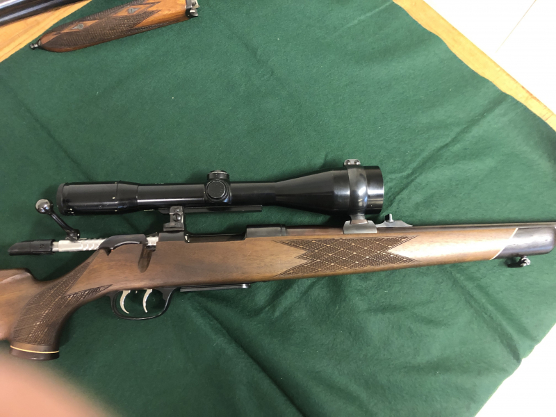 Aus Jägernachlaß: Top Zustand wurde nur zur Jägerprüfung benützt. Gesamtlänge 110 cm, Lauflänge 65 cm, Schaftlänge 36 cm.